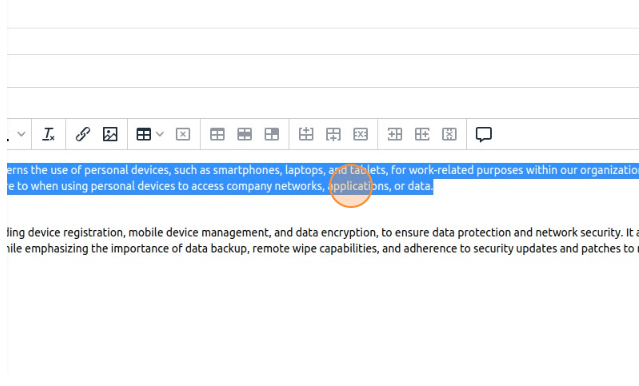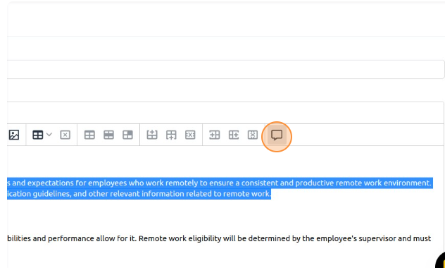 3. Within the policy description, highlight the specific part of the text that you want to add the comment to.