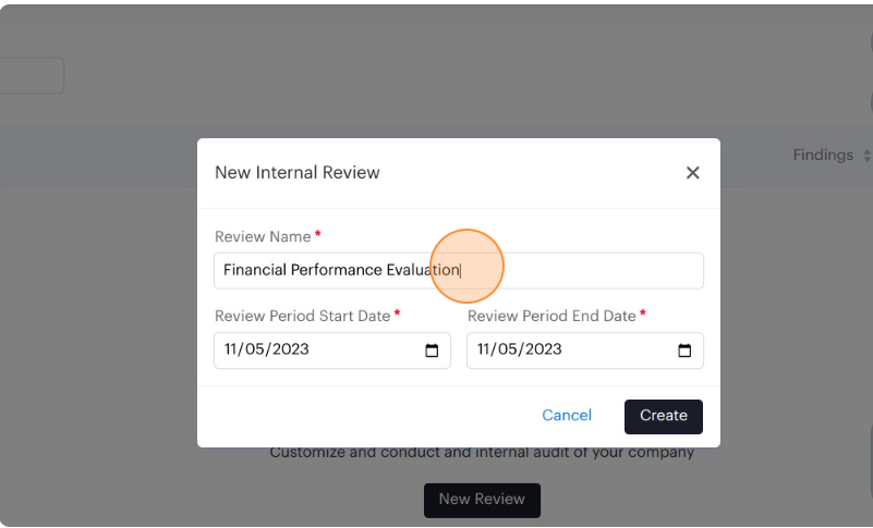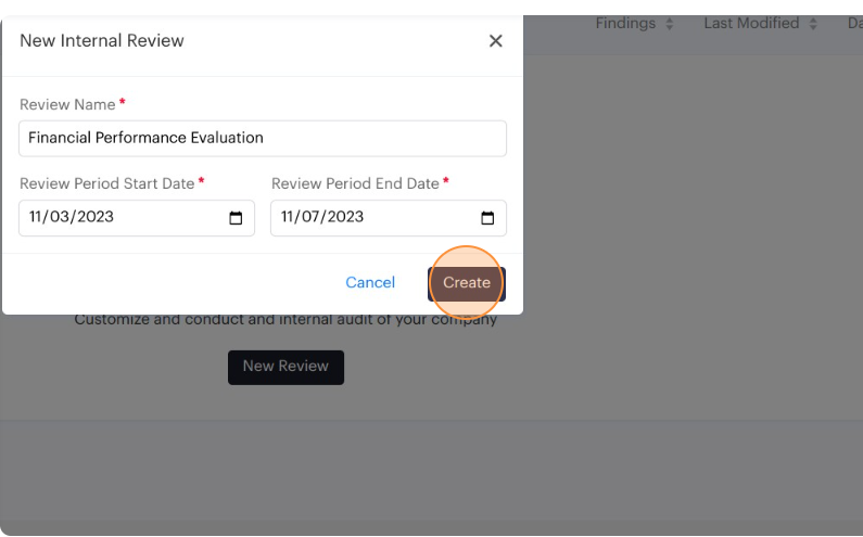 6. The "Cancel" button will close the pop up window without creating a new internal review.
