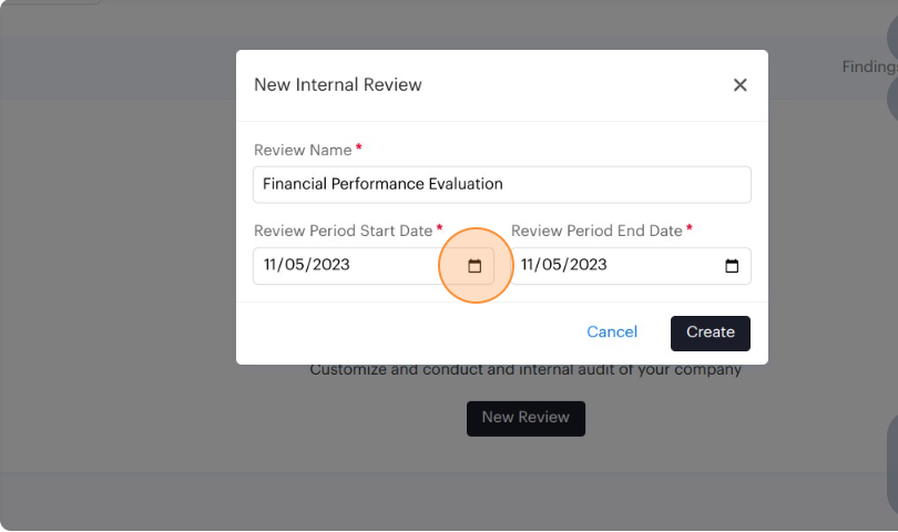 5. Click the "Review Period Start Date" and the "Review Period End Date" calendar icons.