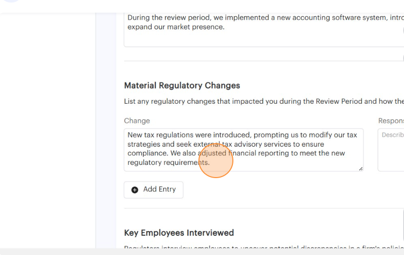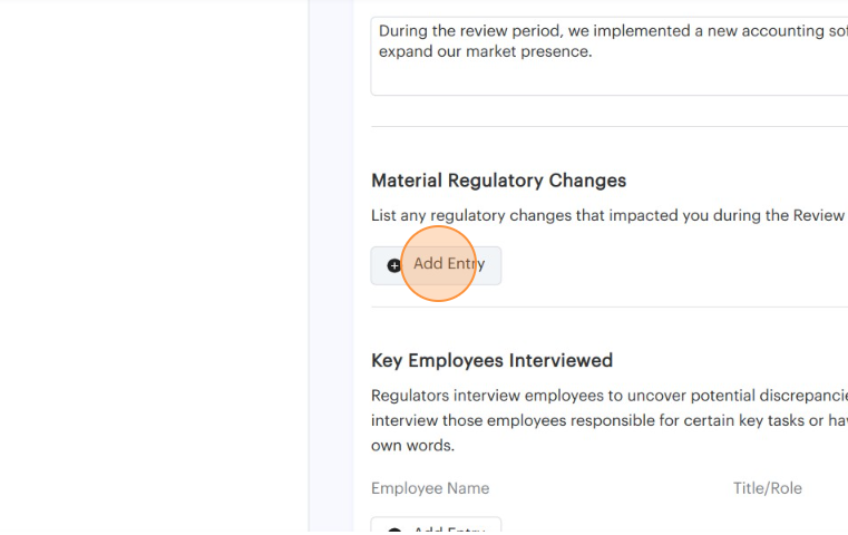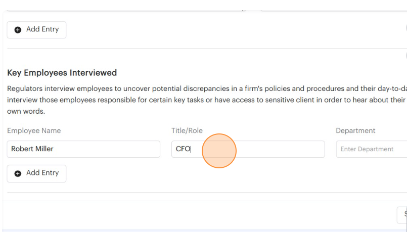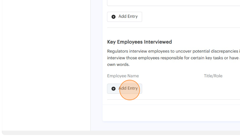 12. Under the key employees interviewed section click the "Add Entry" button.
