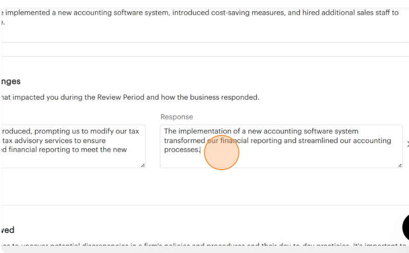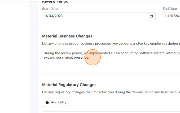 8. Under the material business changes section list any changes to your business practices during the review period.