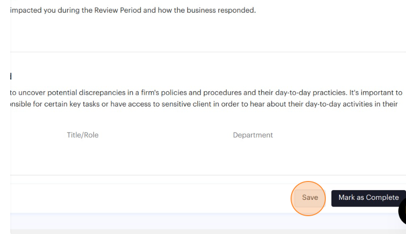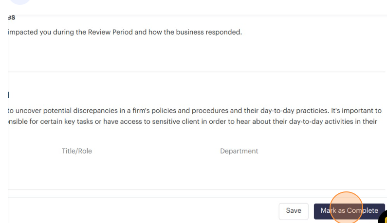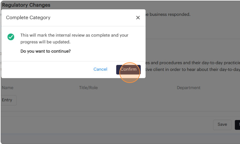 15. To mark the category within the internal review as complete and save the progress you can also click the "Mark as Complete" button.