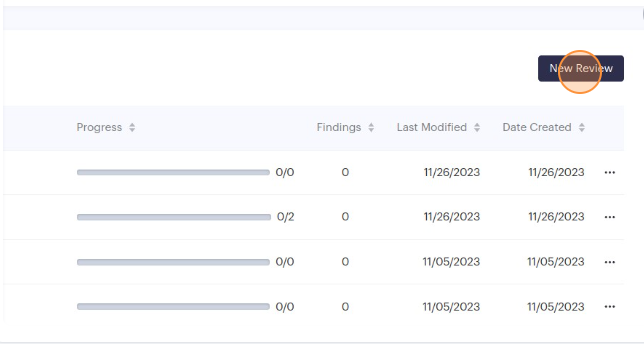 3. If your Internal Reviews page has no reviews yet, the empty state will also have a "New Review" button that also allows you to start a new internal review.