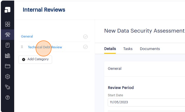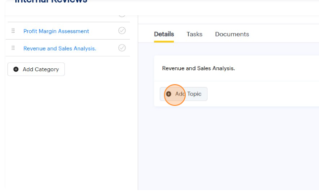 2. Click on the name of the internal review to which you want to add a topic. This action will take you to the Details page for that specific internal review.