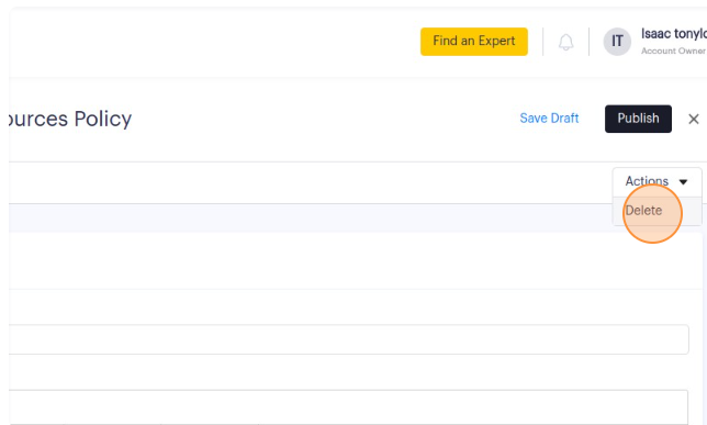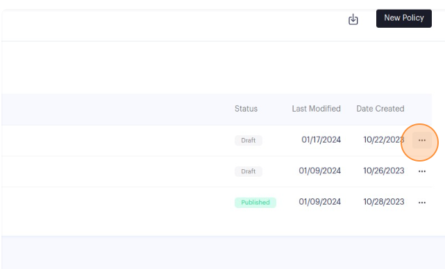 2. There are two ways to delete a policy. The quickest is simply to find the policy you would like to delete and you can access the "Delete" option through the overflow menu on that policy's table row.