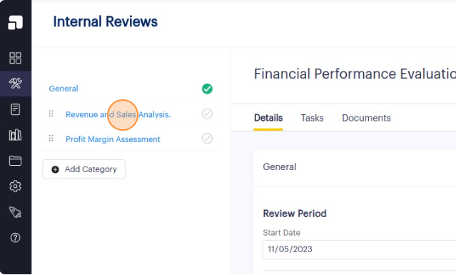2. Click on the name of the internal review that contains the topic you wish to delete. This action will redirect you to the Details page of the specific internal review.