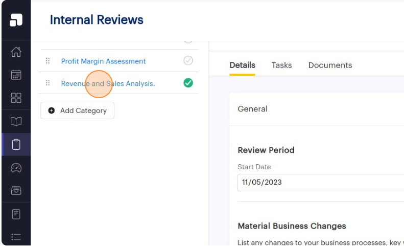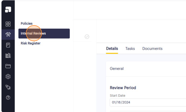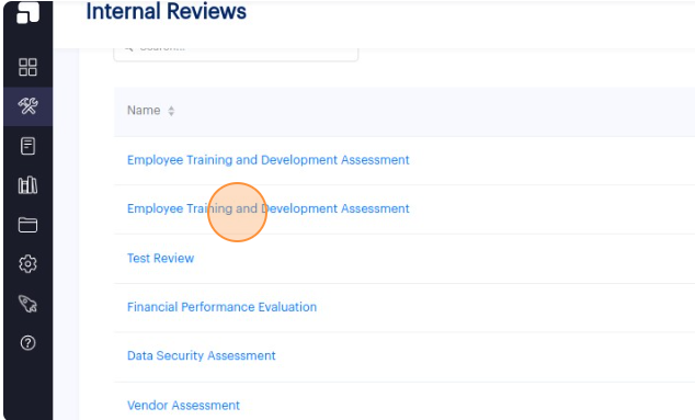 2. Click on the name of the internal review that contains the items you wish to delete. This action will redirect you to the Details page of the specific internal review.