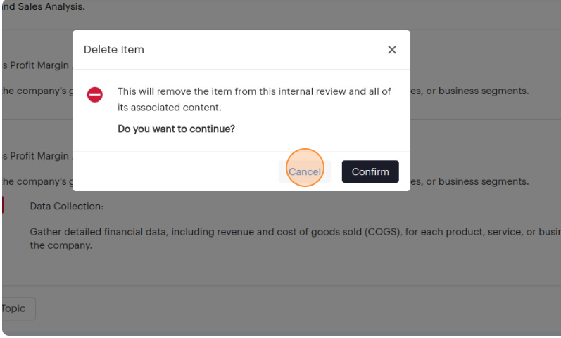 7. The "Cancel" button will close the pop-up without deleting the item.