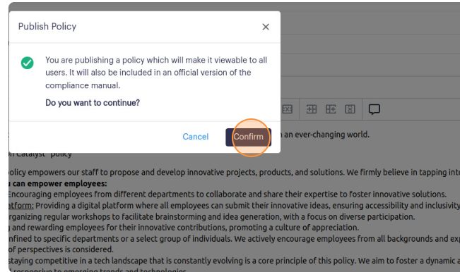 5. You must click the "Confirm" button to affirm your intent to publish the edits you've made on the policy.