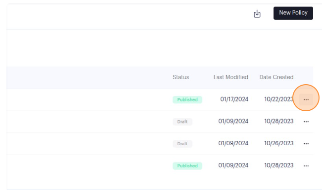 8. Once the Policy Details page is open, you can follow from step #3 to make edits and save or publish them.