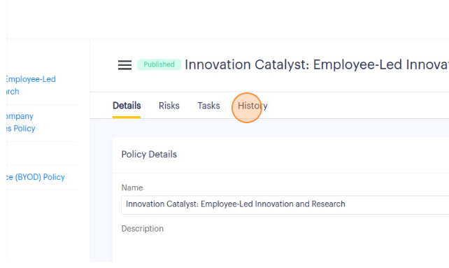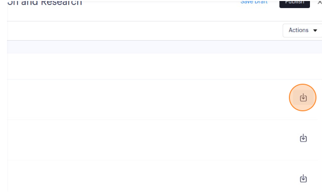 5. Identify the historical version of the policy you wish to export and click the corresponding export icon button. Typically identified by a downward facing arrow.