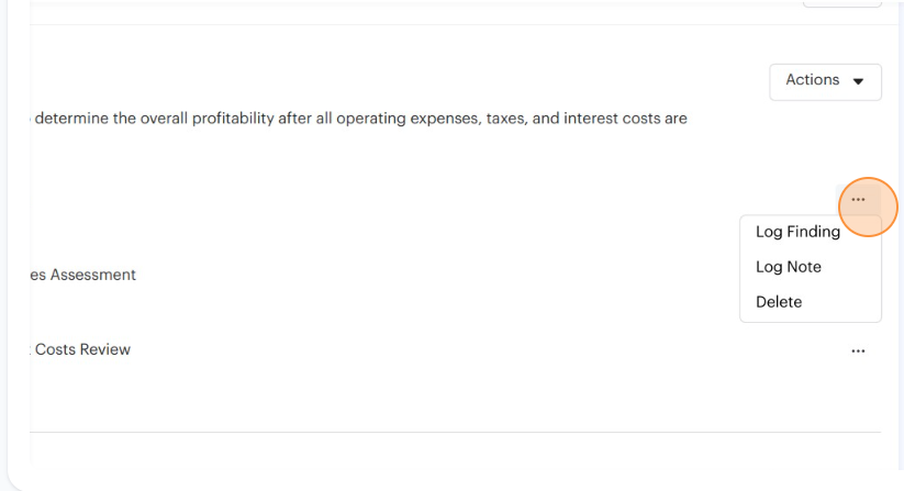4. Identify the item under which you'd like log a finding and click the overflow menu represented by the "..." icon on the item's row.