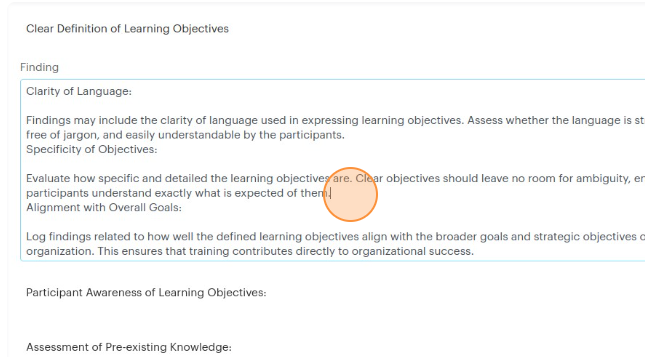 6. A textbox should appear just below the item where you can write detailed notes about your finding.