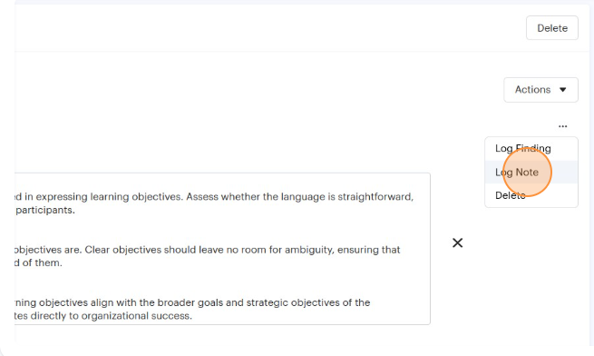 5. Click the "Log Note" option from the dropdown menu.