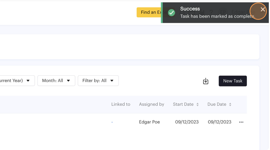 - Alternatively, you may mark a task as complete within the Edit Task pop-up. You can refer to the guide: https://help.complect.com/general/how-to-edit-a-task/ to access the pop-up.